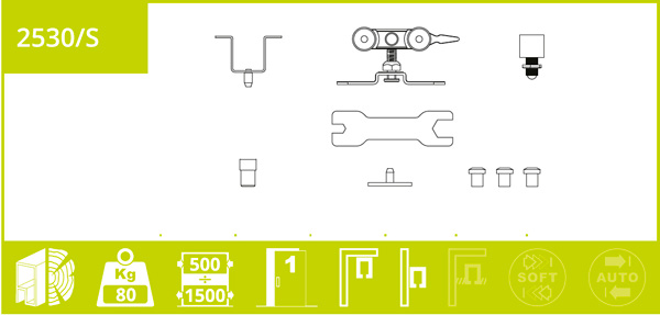 Итальянский производитель раздвижных систем Villes2000 создает свою продукцию, тесно сотрудничая с наиболее известными дизайнерами. Вместе со строгим контролем качества это дает потребителям отличный во всех смыслах ассортимент, который способен удовлетворить любые потребности. Данная модель VILLES 2530/S предназначена для раздвижных межкомнатных дверей в формате "книжка". Она очень удачно впишется в любой дизайн - от классики до современного хай-тека, дополнительно создавая огромные дизайнерские возможности в интерьере. Кроме этого, такой вариант дверной раздвижной системы в процессе открывания и закрывания НЕ задействует полезное пространство жилой площади. С помощью него можно контролировать ширину проема в результате полного или частичного закрывания дверей. Комплект предназначен для ДВУХ деревянных или профильных полотен шириной от 500 мм, толщиной от 16 до 40 мм и весом каждого до 60 кг. Благодаря нейлоновым проводникам сборка дверей будет тихой и легкой. Монтируется данная модель как к потолку, так и к стене.
