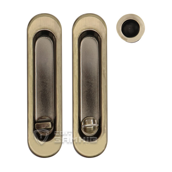 С дизайнерской точки зрения данные ручки выделяются своим минимализмом, поэтому не будут привлекать лишнего внимания. В бронзовом цвете почти магическим образом завершат общий образ помещения в классическом или модерновом стиле с присутствием дерева. Материал изготовления - цинковый сплав. Благодаря этому и инновационной технологии гальванической обработки ручки сохранят свой внешний вид в течение долгого времени. С помощью этого комплекта можно закрывать как два полотна между собой так и фиксировать одно полотно вплотную к стене.