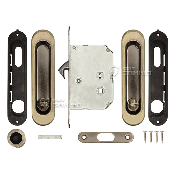 Комплект замка для раздвижной системы KEDR (механизм + ручки + отв.планка) AB бронза