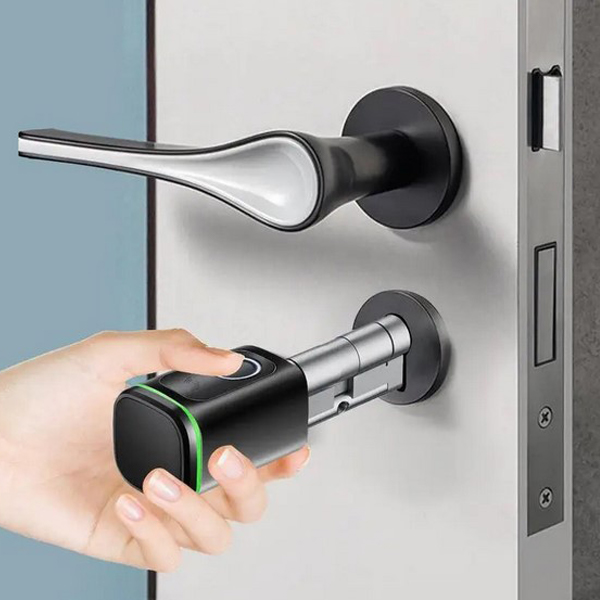 1. Керування смарт-циліндром через Bluetooth (встановивши безкоштовний мобільний застосунок). Користувач може з легкістю відчинити двері “цифровим ключем” та поділитись доступом до свого розумного замка. Тепер не потрібно носити з собою фізичні ключі.