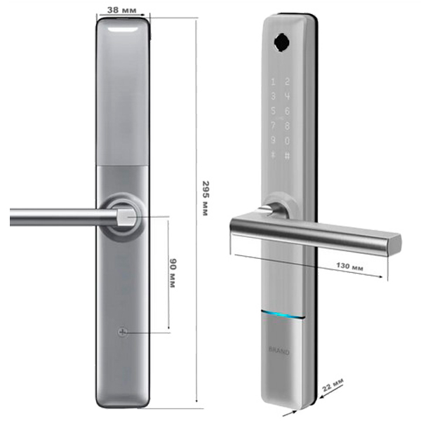 Проще говоря, PES Bigl это накладной смарт-замок, который устанавливается накладным способом с внутренней и внешней стороны двери на врезную механическую часть замка. Работает от батареек типа АА, которых хватает примерно на 1 год использования. Имеет сенсорную клавиатуру для ввода пароля, датчик считывания отпечатка пальца на внешней части накладки.