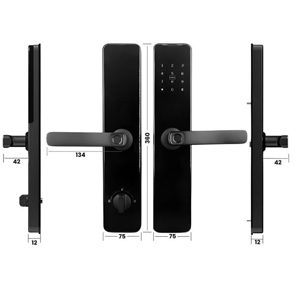 Простіше кажучи, PES Collie це смарт-замок, який встановлюється накладним монтажем з внутрішньої та зовнішньої сторони дверей на врізну механічну частину замка. Може використовуватися як в офісах, так і в готелях, хостелах, зйомних квартирах. Має сенсорну клавіатуру для введення пароля, датчик для зчитування відбитка пальця на обох натискних частинах ручки та перемикач механічного блокування – “нічник”.