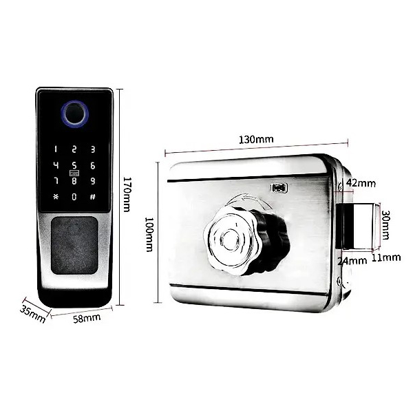 Проще говоря, PES Gate 2 это дополнительный накладной смарт-замок, который устанавливается накладным способом с внутренней и внешней стороны двери. Работает от 4 батареек типа АА, которых хватает примерно на 1 год пользования. В конструкции имеет сенсорную клавиатуру для ввода пароля, датчик для считывания отпечатка пальца на наружной и внутренней части накладки, ключевое отверстие и врезную моторную часть замка с прямым ригелем. Открыть дверь с данным смарт-замком можно с помощью: отпечатка пальца, пароля, брелка или NFC-метки, RFID-карты, смартфона с использованием интернета и приложения Sorex Smart Lock. Отмыкание механическим ключом также возможно – на внутренней части планки для этого есть ключевое отверстие. Однако данный способ используют чаще всего для экстренного открытия. Также он прекрасно скрывает все монтажные отверстия и придает эстетическому виду любой двери.