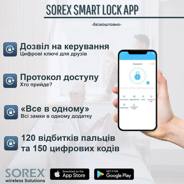 Управление и настройка происходит в бесплатном приложении Sorex Smart Lock для Android и iOS с помощью Bluetooth. Через него можно открывать и закрывать двери, предоставлять временный, постоянный или циклический доступ родственникам, друзьям или гостям, получать уведомления о состоянии двери и батареи, а также настраивать автоматическое открытие и закрытие двери по расписанию или по прибытии. Приобретая дополнительно хабы, можно подключиться к Интернету и расширить стандартные возможности умного замка. Детальнее о них здесь.