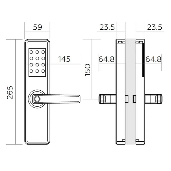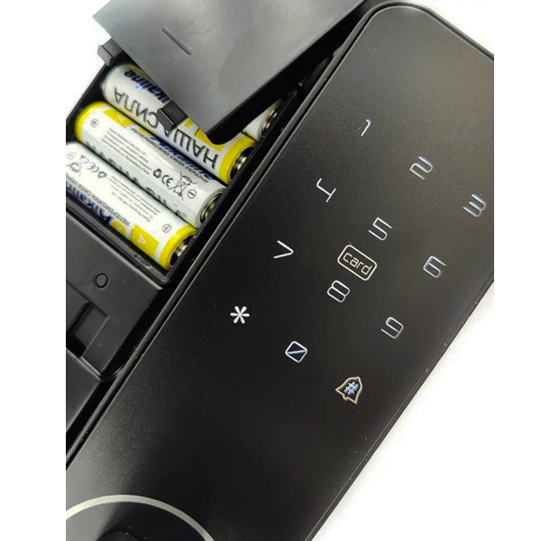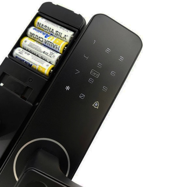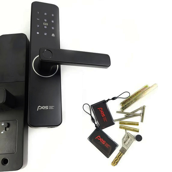 Проще говоря, PES Mini – это накладной смарт-замок, который устанавливается накладным способом с внутренней и внешней стороны двери на врезную механическую часть замка. Работает от батареек типа АА, которых хватает примерно на 1 год использования. Имеет сенсорную клавиатуру для ввода пароля, датчик считывания отпечатка пальца на внешней части накладки.
