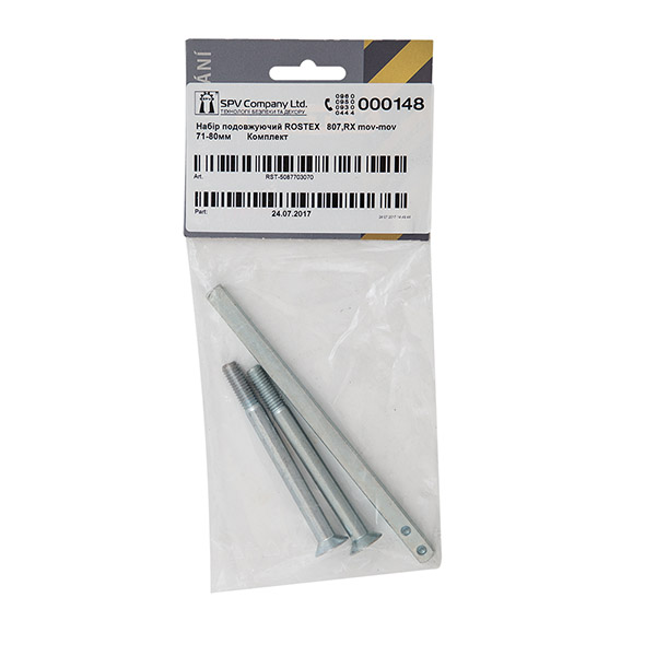 Удлиняющий набор ROSTEX RX - это комплект, который предназначен для защитной фурнитуры ROSTEX RX в варианте, где обе ручки являются нажимными. Позволяет установить их на двери с толщиной полотна 71-80 мм.