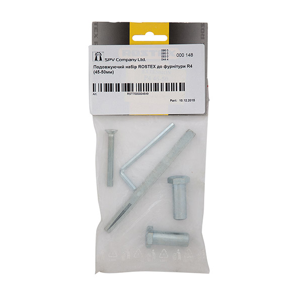 Удлиняющий набор ROSTEX R4 - это комплект, который предназначен для защитной фурнитуры ROSTEX R4 в варианте, где обе ручки являются нажимными. Позволяет установить их на двери с толщиной полотна 45-50 мм.