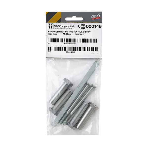 Удлиняющий набор ROSTEX SOLID-PRO+ - это комплект, который предназначен для защитной фурнитуры ROSTEX SOLID-PRO+ в варианте, где обе ручки являются нажимными. Позволяет установить их на двери толщиной полотна 71-80 мм.