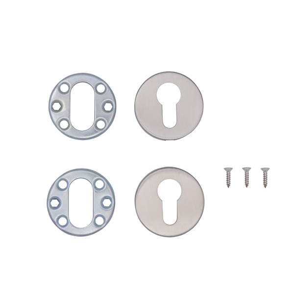 Накладки CISA 06093.00 используются как декоративный элемент маскировки отверстий под сердцевину и для придания эстетическому виду дверного полотна. Выполнены из нержавеющей стали и состоят из двух половинок по обе стороны двери.