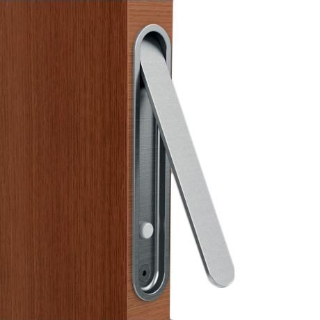 JNF IN.16.312 – это ручка, специально предназначенная для врезки в торец дверей, смонтированных в раздвижную систему и располагающихся в нише. Нет выпуклых деталей, поэтому она не выступает за край дверного полотна. Благодаря этому не мешает его полному закрыванию. Также отличительной особенностью этой ручки является то, что для открывания нужно на нее нажать и только потом тянуть.
