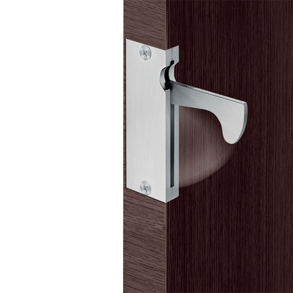 JNF IN.16.317 – это ручка, специально предназначенная для врезки в торец дверей, смонтированных в раздвижную систему и располагающихся в нише. Нет выпуклых деталей, поэтому она не выступает за край дверного полотна. Благодаря этому не мешает его полному закрыванию. Также отличительной особенностью этой ручки является то, что для открывания нужно на нее нажать и только потом тянуть.