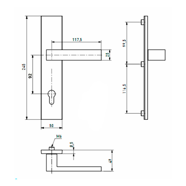 Ручка на планке польского производителя MEDOS является результатом постоянного поиска инновационных решений и внедрения современных технологий на производстве. Данная модель MEDOS Dublin из серии FrontLine устанавливается преимущественно на металлопластиковые или алюминиевые двери с замком под сердцевину. Ручка выполнена по специальной технологии с экструдированного алюминия. Это обеспечивает ей не только привлекательный внешний вид, но и высокие эксплуатационные свойства - устойчивость к царапинам, истиранию, влаге и выгоранию. В данной комплектации присутствуют одна нажимная ручка, которая монтируется изнутри и одна накладка под цилиндр, которая может быть в паре с офисной ручкой (в комплект не входит). Благодаря подпружиненному механизму нажимается без особых усилий. Основным техническим параметром, по которому ее подбирают к замку, является межосевое расстояние. В этой модели она составляет 92 мм. Анодированное шлифованное покрытие обеспечит длительное использование ручки в первозданном виде. Сдержанный вид в цвете нержавеющей стали идеально подойдет для установки на двери в современных помещениях в high-tech стиле. Планка крепится к дверному полотну на 3 винта. Для длительной эксплуатации важно, чтобы это выполнялось правильно и профессионально.