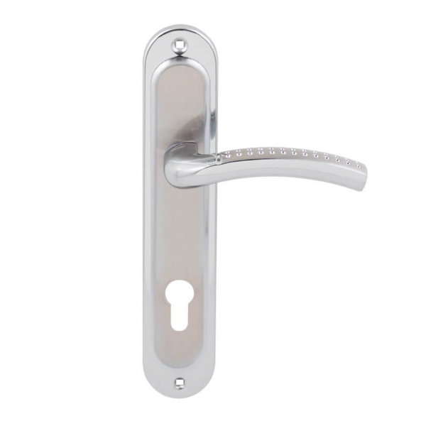 Ручки на планке торговой марки BRUNO. Эта модель изготовлена из алюминиевого сплава, его преимущество в том, что он легкий и приятный на ощупь. Устанавливаются на деревянные межкомнатные двери. Защита цветового оттенка от стирания в течение 36 месяцев обеспечивает покрытие специальным методом гальваники. Современный цвет – матовый никель/хром - удачный выбор для помещения в спокойных серых тонах. При выборе ручки на планке важно обратить внимание на такой критерий как межосевое расстояние, оно может быть разное и зависит от механизма замка. Такая модель подходит для механизмов замка с межосевым расстоянием 62 мм. Во время крепления важно прочно зафиксировать ручки гужоном. Это специальный винт, который позволит избежать проблем с их провисанием и расшатыванием. Популярный дизайн в стиле модерн будет идеальным выбором для интерьера с плавными линиями.