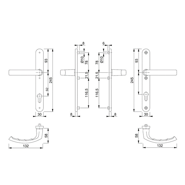 Ручки на планке немецкого производства HOPPE. Надежная европейская дверная фурнитура, которая гармонично дополнит дверное полотно в офисе или магазине. Материал изготовления - алюминиевый сплав, его преимущества в том, что он легкий и приятный на ощупь. Устанавливаются на входные и межкомнатные двери из металлопластика или алюминия. Удобная нажимная часть оснащена металлическим пружинным механизмом и приятно ложится в руку. Такие ручки не имеют проблем с провисанием или расшатыванием. Планка узкая, крепится к дверному полотну стяжными винтами, что повышает устойчивость ручек к силовому взлому и обеспечивает их надежную фиксацию. Современный цвет - натуральный алюминий - прекрасно довершит светлое дверное полотно. При выборе важно учитывать такой технический критерий как межосевое расстояние, оно может быть разное и подбирается исключительно под Ваш замок. Эта модель подходит только для механизмов замка с межосевым расстоянием 92 мм.
