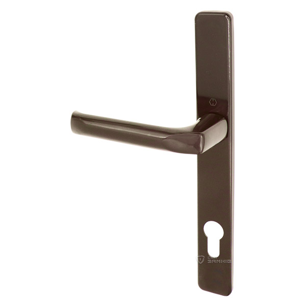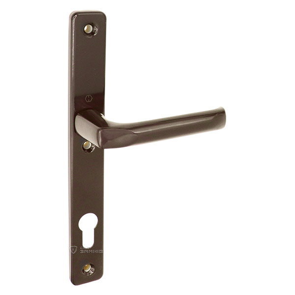 Ручки на планке немецкого производства HOPPE. Надежная европейская дверная фурнитура, которая гармонично дополнит дверное полотно в офисе или магазине. Материал изготовления - алюминиевый сплав, его преимущества в том, что он легкий и приятный на ощупь. Устанавливаются на входные и межкомнатные двери из металлопластика или алюминия. Удобная нажимная часть оснащена металлическим пружинным механизмом и приятно ложится в руку. Такие ручки не имеют проблем с провисанием или расшатыванием. Планка узкая, крепится к дверному полотну стяжными винтами, что повышает устойчивость ручек к силовому взлому и обеспечивает их надежную фиксацию. Приятный коричневый цвет прекрасно подчеркнет интерьер с элементами кофе. При выборе важно учитывать такой технический критерий как межосевое расстояние, оно может быть разное и подбирается исключительно под Ваш замок. Эта модель подходит только для механизмов замка с межосевым расстоянием 92 мм.