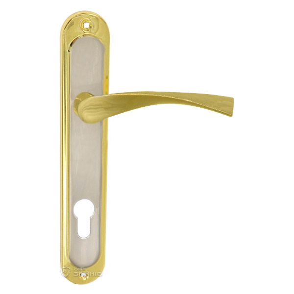 Ручки на планке торговой марки IMPERIAL представляют собой практичную дверную фурнитуру по бюджетной цене. Эта модель производится из алюминиевого сплава. Это легкий материал, который не рекомендуем использовать на массивной входной двери. Покрытие наносится методом гальваники, что гарантирует устойчивость цветового оттенка к царапинам и истиранию в течение 36 месяцев. Приятный цвет “сатин/золото” хорошо подойдет для помещения с золотыми оттенками. Если Вы хотите успешно подобрать ручку на планке, Вам нужно знать такой критерий как межосевое расстояние. Она может быть разной и зависит от механизма замка. Данная модель ручки подходит только для замков с межосевым расстоянием 55 мм. Если позволяет замок советуем монтировать такие ручки на стяжные винты, что не даст вырвать их или демонтировать снаружи. Приятный дизайн в стиле модерн станет идеальным выбором для дверного полотна с плавными линиями.