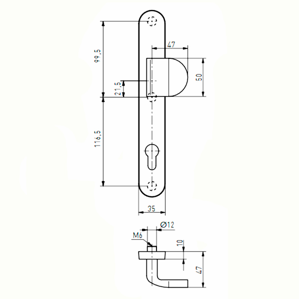 Модель ручки на планці MEDOS Brussels 92/35