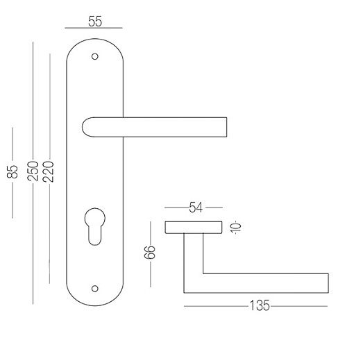 Скругленные линии планки и прямолинейное исполнение нажимной части отлично подойдет в любой современный интерьер, гармонично дополняя его. Цвет нержавеющей стали будет уместен как в офисном помещении, так и в доме или квартире в холодных светлых тонах. Чтобы удачно подобрать ручку на планке нужно знать такую характеристику как межосевое расстояние. Это расстояние должно соответствовать Вашему механизму замка. Данные ручки подходят для замков с межосевым расстоянием в 85 мм. Крепление ручки производится с помощью шурупов или стяжных винтов.
