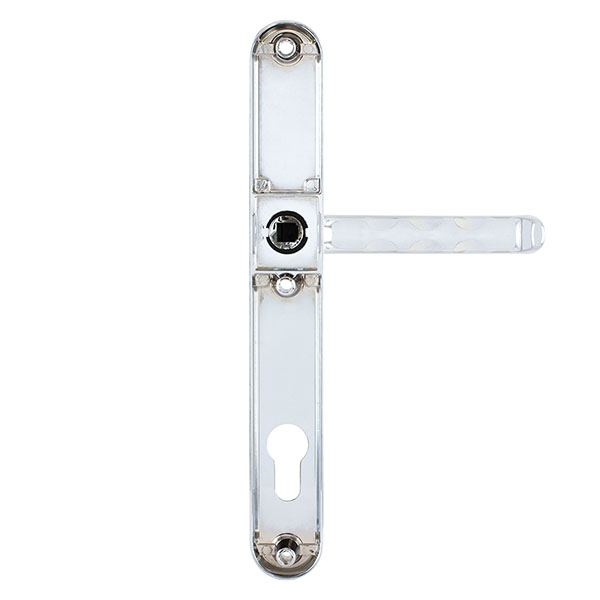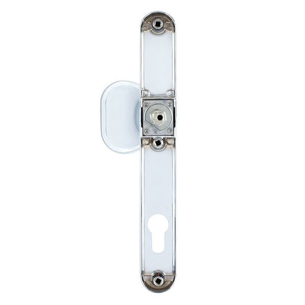 Защитные ручки на планке чешского производства ROSTEX. Это дверная фурнитура высокого качества разработана для помещений с большим трафиком людей. Ручки и планки изготавливаются из нержавеющей стали, а декоративная плата, которая накладывается на планку, изготавливается из цинкового сплава. Монтируется эта модель на два стяжные винты М8, благодаря чему ручки прочно закрепляются на планке и имеют защиту от вандального взлома. Все это делает данную фурнитуру устойчивой к взлому и другим силовым методам. Еще одной особенностью является разный тип ручек. С одной стороны, это обычная нажимная ручка, а с другой фиксированная. Такие ручки обеспечат быстрое и удобное пользование промежуточной комнатой в офисе и тому подобное. Современный минималистичный дизайн гармонично дополнит дверное полотно с прямыми линиями или стеклянными вставками. Яркий цвет - хром полированный - прекрасно подойдет для офисного помещения или квартиры в светлых оттенках, а темному дверному полотну придаст немного контраста. Покрытие методом гальваники гарантирует надежную защиту цветного оттенка от стирания до 120 месяцев. При выборе обратите внимание, что такие ручки подходят только для механизма замка с межосевым расстоянием 92 мм. При необходимости монтажа фурнитуры на широкие двери рекомендуем приобрести соответствующий удлинительный набор.