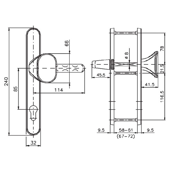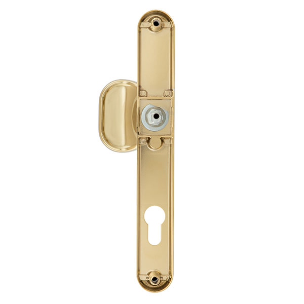 Защитные ручки на планке чешского производства ROSTEX. Это дверная фурнитура высокого качества разработана для помещений с большим трафиком людей. Ручки и планки изготавливаются из нержавеющей стали, а декоративная плата, которая накладывается на планку, изготавливается из цинкового сплава. Монтируется эта модель на два стяжные винты М8, благодаря чему ручки прочно закрепляются на планке и имеют защиту от вандального взлома. Все это делает данную фурнитуру устойчивой к взлому и другим силовым методам. Еще одной особенностью является разный тип ручек. С одной стороны, это обычная нажимная ручка, а с другой фиксированная. Такие ручки обеспечат быстрое и удобное пользование промежуточной комнатой в офисе и тому подобное. Современный минималистичный дизайн гармонично дополнит дверное полотно с прямыми линиями или стеклянными вставками. Яркий цвет - титан PVD - хорошо сочетается с интерьером в светло-золотых оттенках. Покрытие методом гальваники гарантирует надежную защиту цветного оттенка от стирания до 120 месяцев. При выборе обратите внимание, что такие ручки подходят только для механизма замка с межосевым расстоянием 85 мм. При необходимости монтажа фурнитуры на широкие двери рекомендуем приобрести соответствующий удлинительный набор.