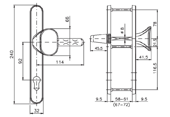 | Тип ручки на планке | защитная под сердцевину | |