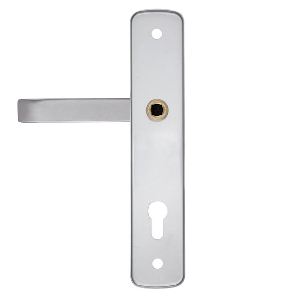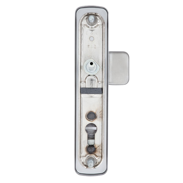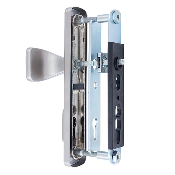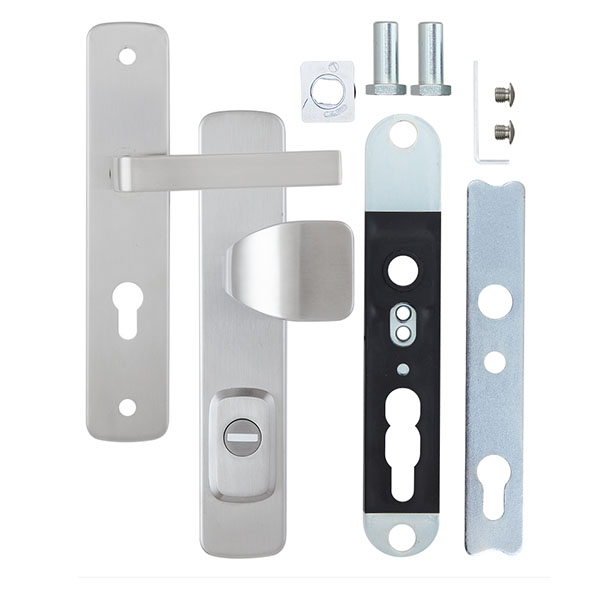 Взломостойкие ручки на планке с протектором чешского производства ROSTEX. Если у Вас возникает потребность надежно защитить замок и сердцевину, то эта модель сможет полностью удовлетворить ее. Ручки изготавливаются из прочной нержавеющей стали, планки в свою очередь изготавливаются из цинкового сплава. Внешне планки не видно отверстий для крепления, они находятся в середине и фиксируются с помощью двух мощных винтов М8. Сердцевина защищена протектором с закаленной стали и шайбой с отверстием под ключ из нержавеющей стали. Благодаря этому эта модель имеет высокий уровень защиты от высверливания, взлома и другой силовых методов взлома. Цветовой оттенок защищен специальным методом гальваники, что гарантирует его устойчивость к стиранию в течение 120 месяцев. Цвет нержавеющая сталь матовая - прекрасно дополнит помещения в холодных светлых тонах, а интерьеру в темных оттенках добавит немного контраста. В этой модели тип ручек разный, с одной стороны это обычная нажимная, а с другой фиксированная. Обычно такие ручки используют в помещениях с большим трафиком людей. При выборе обратите внимание на межосевое расстояние ручек и Вашего механизма замка. Данные ручки подходят только для механизмов замка с межосевым расстоянием 85 мм. При необходимости монтажа фурнитуры на широкие двери рекомендуем приобрести соответствующий удлинительный набор.