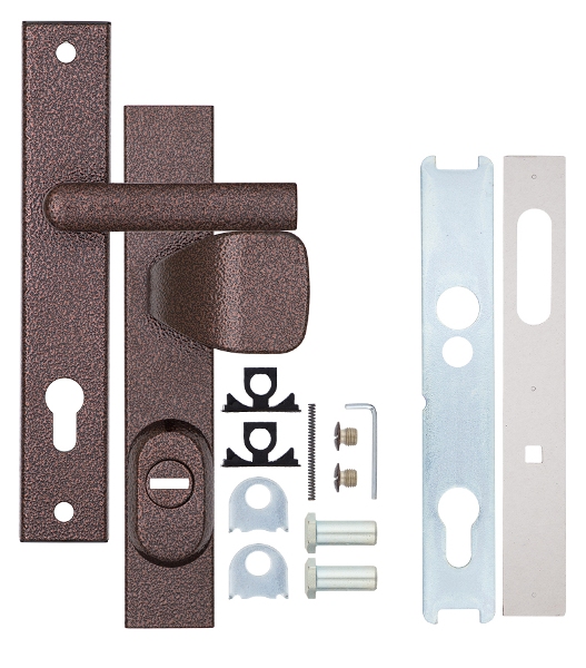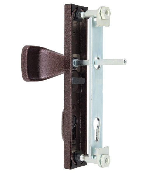 Взломостойкие ручки на планке с протектором чешского производства ROSTEX. Если у Вас возникает потребность надежно защитить замок и сердцевину, то эта модель сможет полностью удовлетворить ее. Ручки изготавливаются из прочной нержавеющей стали, планки в свою очередь изготавливаются из цинкового сплава. Внешне планки не видно отверстий для крепления, они находятся в середине и фиксируются с помощью двух мощных винтов М8. Сердцевина защищена протектором с закаленной стали и шайбой с отверстием под ключ из нержавеющей стали. Благодаря этому эта модель имеет высокий уровень защиты от высверливания, взлома и другой силовых методов взлома. Цветовой оттенок защищен специальным методом гальваники, что гарантирует его устойчивость к стиранию в течение 120 месяцев. Приятный коричневый цвет хорошо подойдет для помещения с кофейными оттенками. В этой модели тип ручек разный, с одной стороны это обычная нажимная, а с другой фиксированная. Обычно такие ручки используют в помещениях с большим трафиком людей. При выборе обратите внимание на межосевое расстояние ручек и Вашего механизма замка. Данные ручки подходят только для механизмов замка с межосевым расстоянием 85 мм. При необходимости монтажа фурнитуры на широкие двери рекомендуем приобрести соответствующий удлинительный набор.