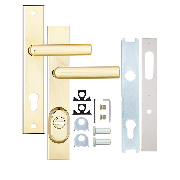 Взломостойкие ручки на планке с протектором чешского производства ROSTEX. Если у Вас возникает потребность надежно защитить замок и сердцевину, то эта модель сможет полностью удовлетворить ее. Ручки изготавливаются из прочной нержавеющей стали, планки в свою очередь изготавливаются из цинкового сплава. Внешне планки не видно отверстий для крепления, они находятся в середине и фиксируются с помощью двух мощных винтов М8. Сердцевина защищена протектором с закаленной стали и шайбой с отверстием под ключ из нержавеющей стали. Благодаря этому эта модель имеет высокий уровень защиты от высверливания, взлома и другой силовых методов взлома. Цветовой оттенок защищен специальным методом гальваники, что гарантирует его устойчивость к стиранию в течение 120 месяцев. Яркий цвет - титан PVD - хорошо сочетается с интерьером в светло-золотых оттенках. Эта модель оснащена удобной нажимной частью с металлическим пружинным механизмом, благодаря чему ручки не будут провисать и расшатываться. При выборе обратите внимание на межосевое расстояние ручек и Вашего механизма замка. Данные ручки подходят только для механизмов замка с межосевым расстоянием 72 мм. При необходимости монтажа фурнитуры на широкие двери рекомендуем приобрести соответствующий удлинительный набор.