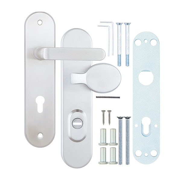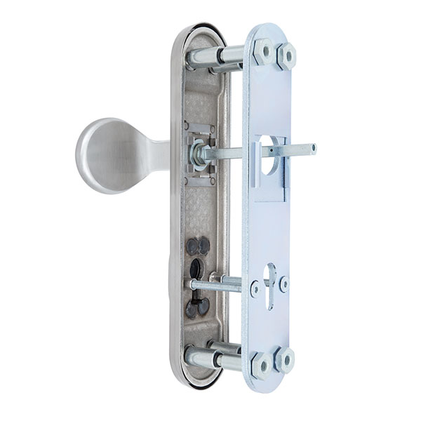 Взломостойкие ручки на планке с проектором чешского производства ROSTEX. Эта серия ручек представляет собой защитную дверную фурнитуру 4-го класса взломостойкости. Она имеет ряд преимуществ, которые сочетают в себе приятный современный дизайн и высокое качество товара. Ручки изготавливаются из нержавеющей стали. Планка изготавливается методом объемного горячей штамповки также из нержавеющей стали. Защитная внешняя планка плотно прилегает по периметру к внутренней планки, таким образом они образуют единое целое, что не дает возможности проникнуть инструменту взлома под края защитной планки. Сердцевину защищает надежный протектор из нержавеющей стали, что гарантирует устойчивость к высверливанию и переламыванию. Процесс монтажа на дверное полотно осуществляется с помощью четырех мощных стяжных винтов М8 и двух винтов М6, которые прочно фиксируют протектор к дверному полотну. Все это делает данную модель практически неуязвимой к методам силового взлома и обеспечит Ваше помещение надежной защитой на долгие годы. В этой модели с одной стороны обычная нажимная, а с другой фиксированная ручка. Обычно их используют в помещениях с большим трафиком людей. Цвет нержавеющая сталь матовая - прекрасно дополнит помещения в холодных светлых тонах, а интерьеру в темных оттенках добавит немного контраста. Покрытия методом гальваники гарантирует Вам сохранение внешнего вида ручек в течение 120 месяцев. При выборе будьте внимательны, так как данная фурнитура подходит только для механизмов замка с межосевым расстоянием 90 мм. При необходимости монтажа фурнитуры на широкие двери рекомендуем приобрести соответствующий удлинительный набор.