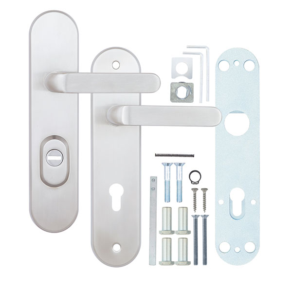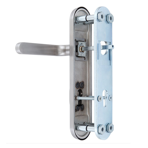 Взломостойкие ручки на планке с проектором чешского производства ROSTEX. Эта серия ручек представляет собой защитную дверную фурнитуру 4-го класса взломостойкости. Она имеет ряд преимуществ, которые сочетают в себе приятный современный дизайн и высокое качество товара. Ручки изготавливаются из каленной стали. Планка изготавливается методом объемного горячей штамповки также из нержавеющей стали. Защитная внешняя планка плотно прилегает по периметру к внутренней планки, таким образом они образуют единое целое, что не дает возможности проникнуть инструменту взлома под края защитной планки. Сердцевину защищает надежный протектор из нержавеющей стали, что гарантирует устойчивость к высверливанию и переламыванию. Процесс монтажа на дверное полотно осуществляется с помощью четырех мощных стяжных винтов М8 и двух винтов М6, которые прочно фиксируют протектор к дверному полотну. Все это делает данную модель практически неуязвимой к методам силового взлома и обеспечит Ваше помещение надежной защитой на долгие годы. Эта модель оснащена удобной нажимной частью с металлическим пружинным механизмом, благодаря чему ручки не будут провисать и расшатываться. Цвет нержавеющая сталь матовая - прекрасно дополнит помещения в холодных светлых тонах, а интерьеру в темных оттенках добавит немного контраста. Покрытия методом гальваники гарантирует Вам сохранение внешнего вида ручек в течение 120 месяцев. При выборе будьте внимательны, так как данная фурнитура подходит только для механизмов замка с межосевым расстоянием 85 мм. При необходимости монтажа фурнитуры на широкие двери рекомендуем приобрести соответствующий удлинительный набор.