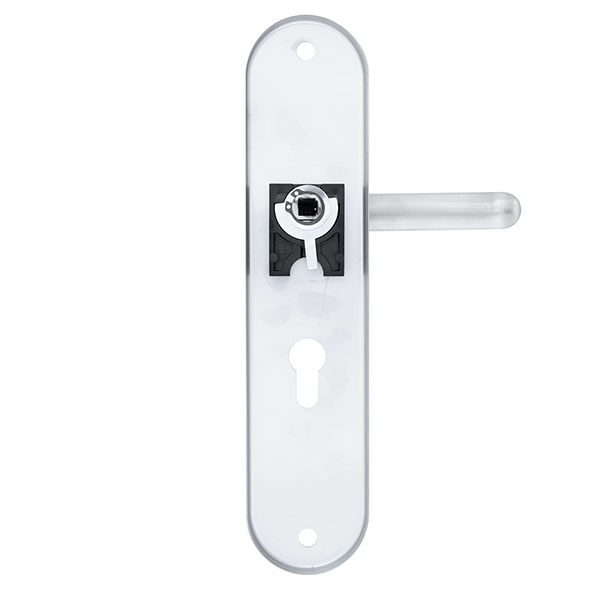 Взломостойкие ручки на планке с протектором чешского производства ROSTEX. Если у Вас возникает потребность надежно защитить замок и сердцевину, то эта модель сможет полностью удовлетворить ее. Ручки изготавливаются из прочной нержавеющей стали, планки в свою очередь изготавливаются из цинкового сплава. Внешне планки не видно отверстий для крепления, они находятся в середине и фиксируются с помощью двух мощных винтов М8. Сердцевина защищена протектором с закаленной стали и шайбой с отверстием под ключ из нержавеющей стали. Благодаря этому эта модель имеет высокий уровень защиты от высверливания, взлома и другой силовых методов взлома. Цветовой оттенок защищен специальным методом гальваники, что гарантирует его устойчивость к стиранию в течение 120 месяцев. Яркий цвет - титан PVD - хорошо сочетается с интерьером в светло-золотых оттенках. Эта модель оснащена удобной нажимной частью с металлическим пружинным механизмом, благодаря чему ручки не будут провисать и расшатываться. При выборе обратите внимание на межосевое расстояние ручек и Вашего механизма замка. Данные ручки подходят только для механизмов замка с межосевым расстоянием 90 мм.При необходимости монтажа фурнитуры на широкие двери рекомендуем приобрести соответствующий удлинительный набор.
