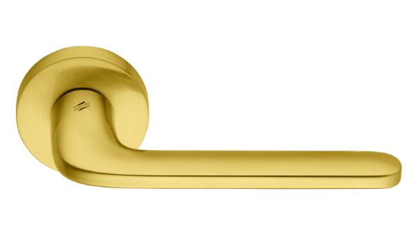 Итальянские ручки на круглой розетте COLOMBO ценят во всем мире за практичность и богатство выбора. Достигается это за счет использования лучших материалов и привлечения известных дизайнеров. Данная модель изготовлена ​​из хромали. Покрыта специальным гальваническим покрытием, обеспечивающим долговечность и устойчивость к мелким механическим повреждениям. Ручки в матовом золотом цвете подойдут для дверей в помещениях с классическим дизайном в темных или кремовых тонах с умеренным количеством орнамента. Благодаря прочной стальной пружине в конструкции, ручка плавно нажимается и не начнет скрипеть даже со временем. Монтируются просто и легко.