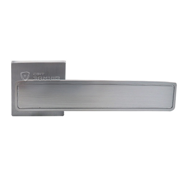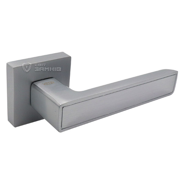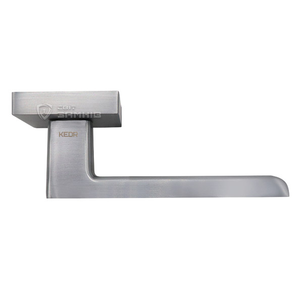 Ручки на розетте торговой марки KEDR. Это практический товар по доступной цене. Материал изготовления - алюминиевый сплав. Нажимная часть удобная и приятная в использовании. Покрытия методом гальваники, гарантирует сохранность внешнего вида ручки в течение 36 месяцев. Цвет этой модели тёртый алюминий уместно будет выглядеть со светлым интерьером. Монтируются такие ручки без особого труда. На дверном полотне имеют аккуратный вид, поскольку отверстия для крепления прикрыты внешней крышкой розетты.