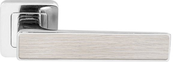 Ручки на розетте торговой марки RDA. Материал изготовления - цинковый сплав, что позволяет выбирать их как для межкомнатных так и входных дверей. Многослойное гальваническое покрытие гарантирует сохранность внешнего вида ручки до 60 месяцев. Дополнительно металлический пружинный механизм обеспечивает легкость нажатия ручки и отсутствие проблем с ее провисанием. Яркое сочетание цветов - хром / дуб атланта - уместно будет смотреться на дверном полотне с светлыми тонами, а темному дверному полотну придаст немного контраста. Особенностью этой модели является возможность установки внутрь ручки вставки с различными цветовыми оттенками, которые гармонично дополнят Ваш интерьер. Монтаж ручки прост и не требует дополнительных усилий. На дверном полотне имеют аккуратный и эстетически привлекательный вид. Современный дизайн в стиле хай-тек прекрасно дополнит дверное полотно с прямыми линиями или вставками из прямоугольного стекла.
