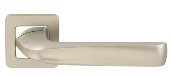 Ручки на розетте торговой марки RDA. Материал изготовления - цинковый сплав, что позволяет выбирать их как для межкомнатных так и входных дверей. Многослойное гальваническое покрытие гарантирует сохранность внешнего вида ручки до 60 месяцев. Дополнительно металлический пружинный механизм обеспечивает легкость нажатия ручки и отсутствие проблем с ее провисанием. Необычное сочетание цветов - хром / сатин никель – уместно подчеркнет интерьер в нежных светлых оттенках. Монтаж ручки прост и не требует дополнительных усилий. На дверном полотне имеют аккуратный и эстетически привлекательный вид. Современный дизайн в стиле хай-тек прекрасно дополнит дверное полотно с прямыми линиями или вставками из прямоугольного стекла.