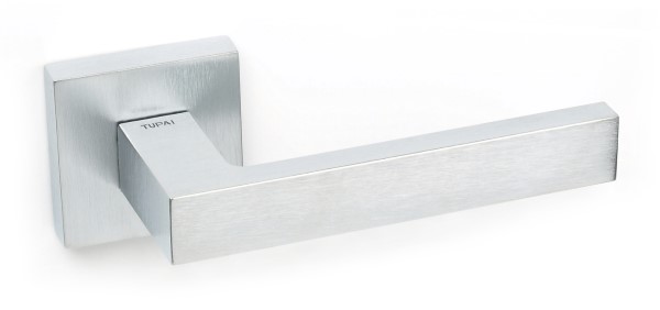 Ручки на розетте португальского производства TUPAI. Дверная фурнитура сделана с учетом экологических европейских стандартов. Изготавливается из латуни по современным технологиям на фабрике в Португалии. Современный цвет - хром матовый - удачный выбор для помещения в спокойных серых тонах. Покрытие наносится специальным методом гальваники в несколько слоев. Благодаря этому ручки будут выглядеть как новые до 24 месяцев. Дополнительно это обеспечивает устойчивость цвета к повреждению и царапинам. Современный дизайн в стиле хай-тек прекрасно дополнит дверное полотно с прямыми линиями.