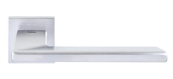 Ручки на розетте португальского производства TUPAI. Дверная фурнитура сделана с учетом экологических европейских стандартов. Изготавливается из латуни по современным технологиям на фабрике в Португалии. Современный цвет - хром матовый - удачный выбор для помещения в спокойных серых тонах. Покрытие наносится специальным методом гальваники в несколько слоев. Благодаря этому ручки будут выглядеть как новые до 24 месяцев. Дополнительно это обеспечивает устойчивость цвета к повреждению и царапинам. Также нажимная часть имеет двойную металлическую пружину, благодаря чему ручка не будет провисать. Современный дизайн в стиле хай-тек прекрасно дополнит дверное полотно с прямыми линиями.