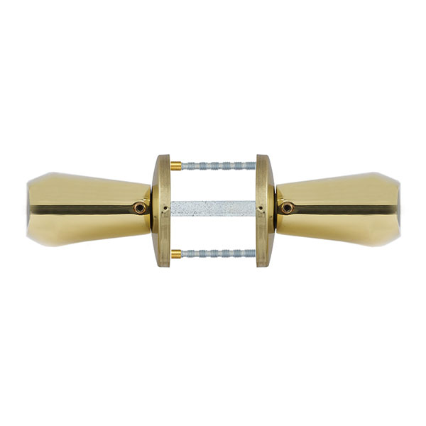 Ручки удобны в использовании благодаря своей массивной форме и матовой поверхности. Конструктивно выполнены из латуни, что свидетельствует об их прочности. Защита цветового оттенка от повреждений, царапин и воздействия окружающей среды обеспечивает специальный метод гальванического покрытия. Стержень и стяжки рассчитаны на толщину дверного полотна от 56 до 80 мм.
