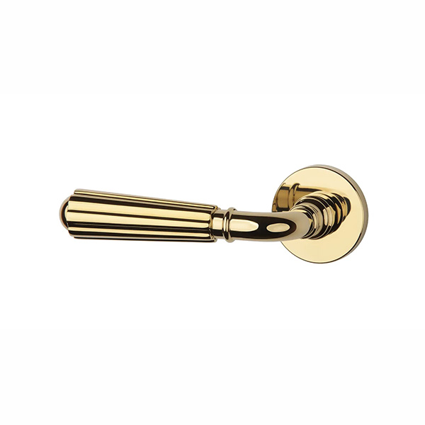 APRILE AS Utrica R 7S – это ручки на круглой розетте. Изготавливаются из цинкового сплава ZAMAK. Благодаря этому достаточно прочны. Современный дизайн в модерновом стиле с прямыми линиями в трендовом цвете.полированная” отлично завершит продуманный стиль вашей двери в подобных золотых оттенках.