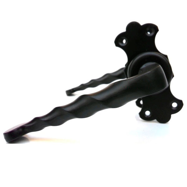 Испанские ручки на розетте для калитки AMIG 101K. Это надежная дверная фурнитура с оригинальным кованым оформлением. Материал изготовления - сталь. Покрыты порошковой краской на эпоксидной основе, что гарантирует устойчивость ручки к коррозии и неблагоприятным погодным условиям. Популярный черный цвет прекрасно дополнит калитку в спокойных темных тонах. Классический дизайн ручек хорошо сочетается с плавными линиями калитки, а также подчеркнет изысканный вкус ее владельца.