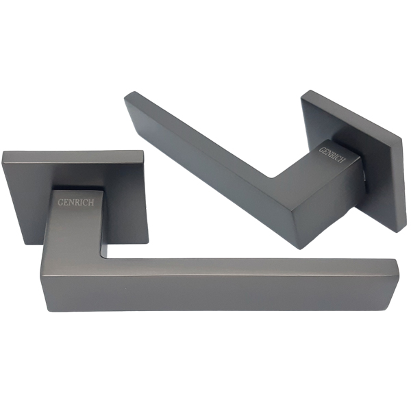 Ручки сделаны из цинкового сплава (ZAMAK). Это придает им прочность и стойкость. Благодаря этому материалу их можно ставить на входные и межкомнатные двери. Прямоугольная форма и квадратная розетка идеально завершат композицию любого интерьера. Ручки будут иметь строгий вид на Вашей двери как светлых, так и темных оттенков. В цвете "графит" выглядят стильно и современно.
