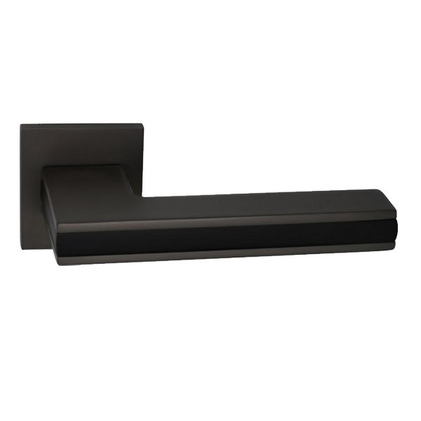Ручки сделаны из цинкового сплава (ZAMAK). Это придает им прочность и стойкость. Благодаря этому материалу их можно ставить на входные и межкомнатные двери. Прямоугольная форма, цветная вставка и квадратная розетта идеально завершат композицию любого интерьера. В дизайне гармонично сочетаются сразу два цвета, что позволяет их использовать на полотнах аналогичных оттенков. Эти ручки будут иметь привлекательный вид на Вашей двери как светлых, так и темных оттенков. В цвете черный матовый/графит выглядят стильно и современно. Матовая поверхность не будет оставлять отпечатки пальцев, жирные пятна или грязь.