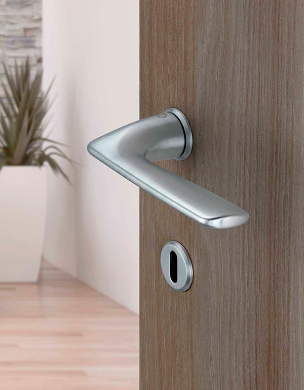 Немецкий производитель дверной фурнитуры HOPPE постоянно в поиске новых инновационных решений в создании своей продукции. Ярким примером этого стали ручки HOPPE Houston. Их главная особенность заключается в уникальном соединении HOPPE Quick-Fit (Быстроштифт). Это механизм, без использования винтов фиксирующий цельный четырехгранный штифт ручки двери и надежно зажимающий его. На практике это дает максимально быстрый монтаж без использования специального инструмента буквально за несколько секунд. При этом в соединении ручек отсутствуют щели и их фиксация в целом надежна. Изготовлены из латуни. Это прочный материал, обеспечивающий длительное использование. С дизайнерской точки зрения HOPPE Houston исполнены в современном минималистическом стиле с прямыми линиями тонкой нажимной части. Матовый хромированный цвет успешно дополнит любой современный интерьер в подобных оттенках. Фишкой этой модели является круглая мини-розетта. Ее диаметр составляет всего 28 мм. Благодаря этому ручки на дверях смотрятся стильно и элегантно. До полной комплектации рекомендуем подобрать подходящий под стиль вороток или накладки на сердцевину.