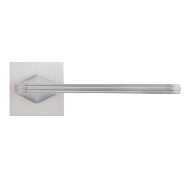 Особенностью данной модели является уникальный дизайн ручек. Он объединяет прямые линии, гладкую поверхность и тонкую квадратную розетту толщиной всего 6 мм. На дверях фурнитура смотрится изящно и эстетично.