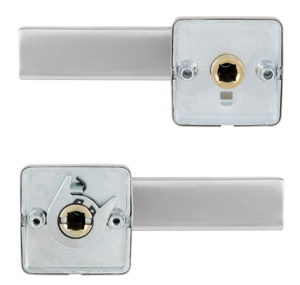 Ручки с квадратной розеттой чешского производителя ROSTEX обычно устанавливают на двери помещений общественного и частного назначения. Изготовлены из нержавеющей стали, что позволяет их использование при различных погодных условиях. Цвет матовой нержавеющей стали имеет приятный холодный оттенок и не привлекает лишнего внимания. На дверном полотне выглядит минималистично. Благодаря качественной поворотной пружине, ручки работают без труда и будут служить долгое время. Отверстия для крепления прикрываются розеттой. Обычно данную модель ручек устанавливают, кроме межкомнатных, еще и на входную дверь в квартиру или дом. В таком случае рекомендуем дополнительно комплектовать их протектором в аналогичном ручкам оттенке. Стержень и стяжки рассчитаны на толщину дверного полотна от 38 до 55 мм. При необходимости установки фурнитуры на толстые двери нужно дополнительно приобрести соответствующий удлинительный набор.