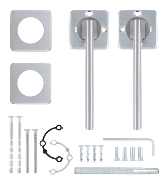 Ручки с квадратной розеттой чешского производителя ROSTEX обычно устанавливают на двери помещений общественного и частного назначения. Изготовлены из нержавеющей стали, что позволяет их использование при различных погодных условиях. Цвет матовой нержавеющей стали имеет приятный холодный оттенок и не привлекает лишнего внимания. На дверном полотне выглядит минималистично. Благодаря качественной поворотной пружине, ручки работают без труда и будут служить долгое время. Отверстия для крепления прикрываются розеттой. Обычно данную модель ручек устанавливают, кроме межкомнатных, еще и на входную дверь в квартиру или дом. В таком случае рекомендуем дополнительно комплектовать их протектором в аналогичном ручкам оттенке. Стержень и стяжки рассчитаны на толщину дверного полотна от 38 до 55 мм. При необходимости установки фурнитуры на толстые двери нужно дополнительно приобрести соответствующий удлинительный набор.