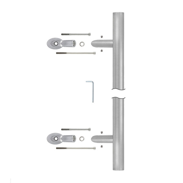 Ручка скоба чешского производства ROSTEX. Идеальный выбор для интерьера в современном стиле. Чтобы открыть дверь достаточно просто потянуть за скобу. Такие ручки прекрасно подойдут для помещений с большим трафиком людей, например, в офис, магазин, кафе или ресторан. Из-за отсутствия пружинного механизма срок эксплуатации в несколько раз больше, чем в фурнитуры нажимного типа. Основным техническим критерием при выборе является длина ручки и расстояние между креплениями. Важно чтобы при установлении скобы, крепления разместились выше и ниже замка. Через дверное полотно делается сквозное отверстие, куда вставляется специальная шпилька. На нее ручка фиксируется гужонами на нижней и верхней розетте. При использовании этой ручки на входной двери советуем доукомплектовывать ее протектором ROSTEX QUADRUM, ROSTEX ROTONDUM или с протектором DISEC квадратной или овальной формы в обработке матовая нержавеющая сталь для защиты сердцевины. Чаще всего используется с замком "бочкой". Если же на дверях установлен обычный механизм замка под язычок то изнутри можно поставить нажимную ручку для свободного выхода из помещения.