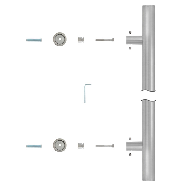 Ручка скоба чешского производства ROSTEX. Идеальный выбор для интерьера в современном стиле. Чтобы открыть дверь достаточно просто потянуть за скобу. Такие ручки прекрасно подойдут для помещений с большим трафиком людей, например, в офис, магазин, кафе или ресторан. Из-за отсутствия пружинного механизма срок эксплуатации в несколько раз больше, чем в фурнитуры нажимного типа. Основным техническим критерием при выборе является длина ручки и расстояние между креплениями. Важно чтобы при установлении скобы, крепления разместились выше и ниже замка. Через дверное полотно делается сквозное отверстие, куда вставляется специальная шпилька с резьбой. На нее накручивается ручка и фиксируется гужонами на нижней и верхней розетте. При использовании этой ручки на входной двери советуем доукомплектовывать ее протектором ROSTEX ROTONDUM в обработке матовая нержавеющая сталь для защиты сердцевины. Чаще всего используется с замком "бочкой". Если же на дверях установлен обычный механизм замка под язычок то изнутри можно поставить нажимную ручку для свободного выхода из помещения.