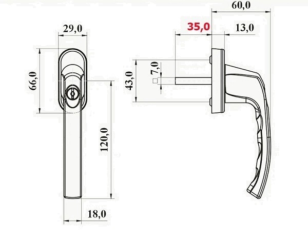 | Тип товара | Ручка віконна | |