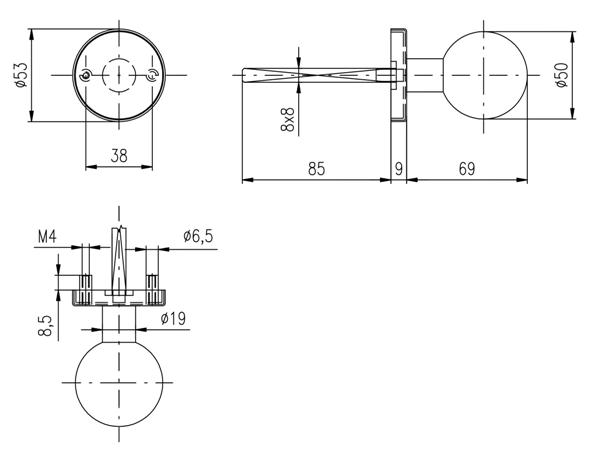 Описание Ручка розетте (половинка) ROSTEX Boll ES52 фиксированная нержавеющая сталь матовая